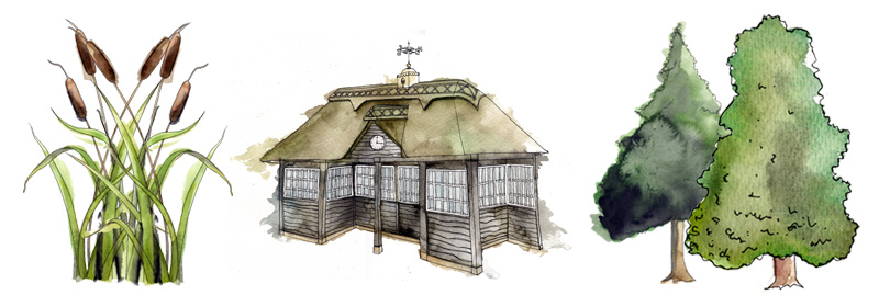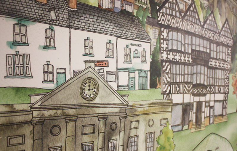 Hand-drawn and painted illustrations printed on vinyls 32m x 1.5m