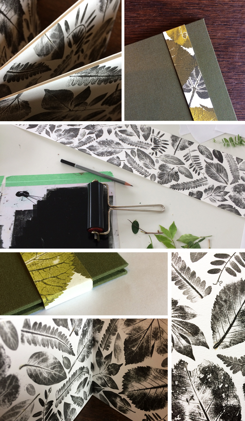 Handmade concertina book of printed leaves from plants found in the Kingsbrae Residency for the Arts garden