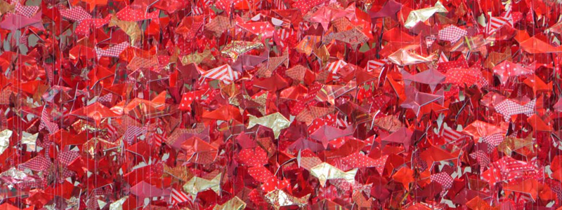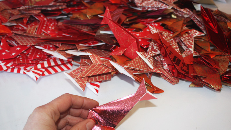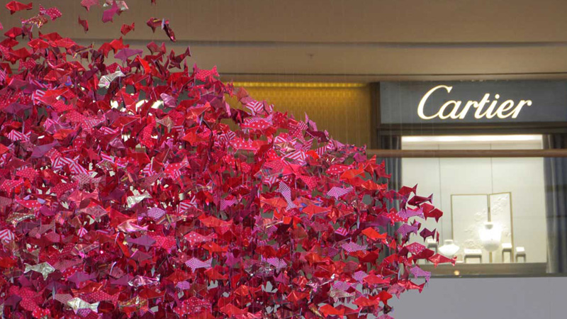 'Shoals of Prosperity' Suspended installation of 5000 origami fish